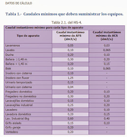 Para determinar el caudal instalado existía una tabla que indicaba los caudales de AFS para cada aparato.