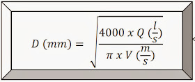 tubería, Q, expresado en l/s, y la velocidad de cálculo, V, expresada en