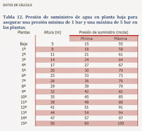 La siguiente tabla muestra la presión necesaria en función de la altura del edificio: